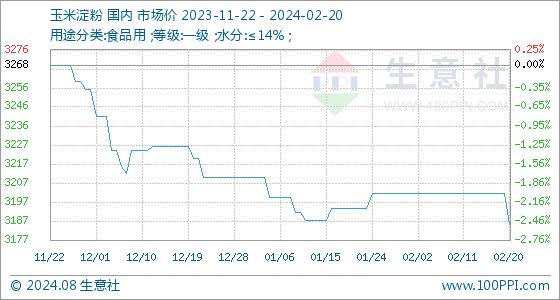 2月20日生意社玉米淀粉基准价为3202.00元/吨