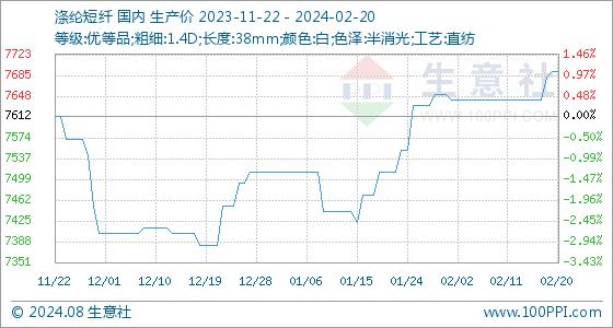 2月20日生意社涤纶短纤基准价为7692.00元/吨