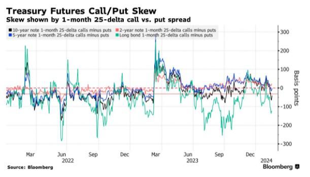 与过去一周期权市场的活动一样,交易员继续支付较高的溢价,以对冲债市抛售和收益率上升的风险。部分长期债券看跌期权所支付的溢价,可能开始反映出长期债券期货合约可能出现交割成本最低的转变,并围绕这种情况进行对冲。