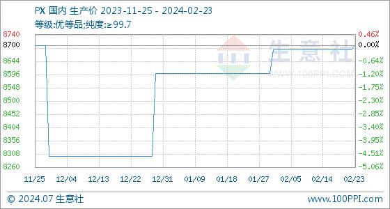 2月23日,生意社PX基准价为8685.71元/吨,与本月初持平。
