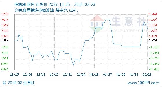 2月23日生意社棕榈油基准价为7540.00元/吨