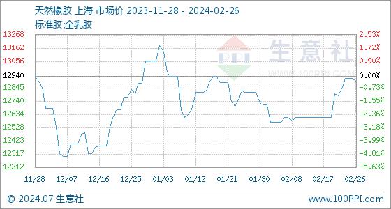 2月26日生意社天然橡胶基准价为12920.00元/吨