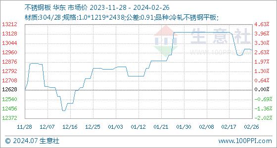 2月26日生意社不锈钢板基准价为12992.86元/吨