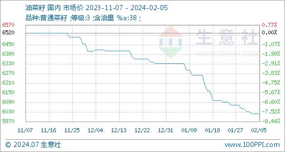 2月5日生意社油菜籽基准价为6020.00元/吨