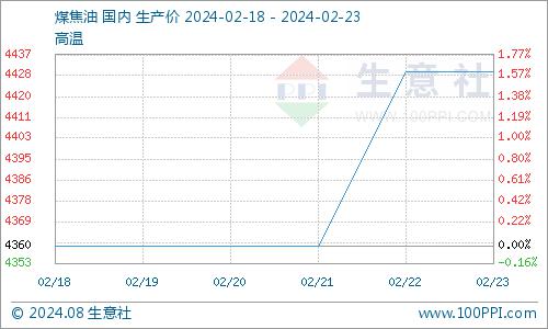 据生意社商品行情分析系统监测:2024年2月18日至2月23日,煤焦油国内出厂价格上调,23日价格在4430元/吨,18日价格在4360元/吨,涨1.61%。
