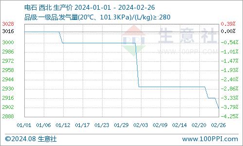 电石方面,根据生意社监测的数据显示,年后电石厂家价格下调,2月17日国内电石均价2933.33元/吨,2月26日均价为2900元/吨,周内价格下调1.14%。随着物流运输的恢复,企业出货好转,生产企业出货积极,库存有所下降。