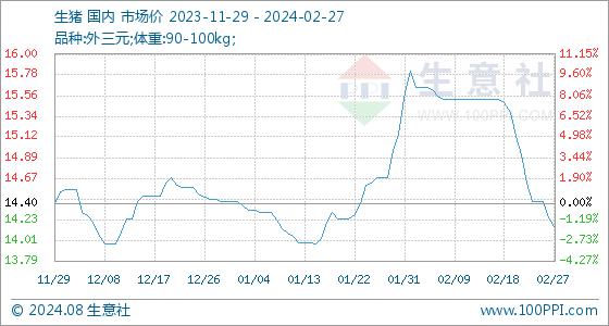 2月27日生意社生猪基准价为14.25元/公斤
