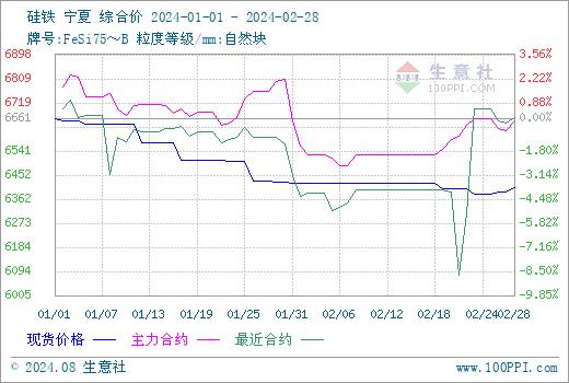 2月份硅铁行情先跌后涨。随着年关临近,硅铁市场逐步进入休假状态的情况下,年后开盘期货,价格随之下滑,而近日或许是传统需求旺季“金三银四”业内人士寄予一番厚望,亦或是重要会议即将召开或会释放一番利好,盘面迎来一波上冲,业内信心有增,价格上调50元/吨。据生意社商品行情分析系统,2月28日硅铁(牌号:FeSi75~B;粒度等级/mm:自然块)宁夏地区市场报价在6250-6450元/吨附近。
