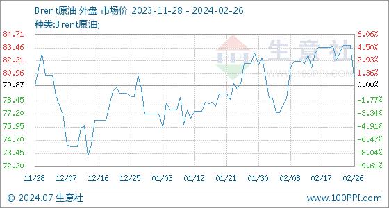 2月26日生意社Brent原油基准价为83.67美元/桶