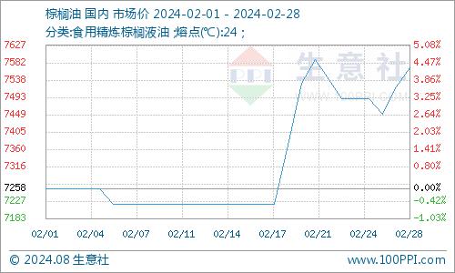 2月硬脂酸价格行情呈震荡上涨的态势,上游油脂集中消费需求增加,棕榈油行情仍将保持坚挺,成本面对现货支撑力度偏强,但进口货源陆续进港,硬脂酸场内存充裕。下游PVC交投情况较为清淡,以消耗存库为主。因此,预计短期内硬脂酸市场或将继续持稳走行。