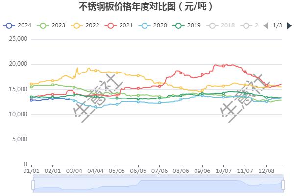 据生意社年度价格对比图显示,近五年,镍和不锈钢3月份大幅上涨概率不大。