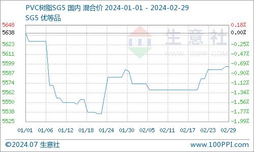 根据生意社监测的数据显示,2月PVC现货市场价格先跌后涨,整体来看价格上涨。2月1日国内PVC均价5574元/吨,2月29日均价为5596元/吨,月内价格上涨0.39%。