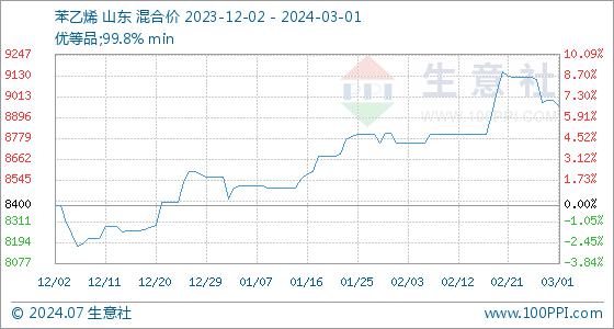 3月1日生意社苯乙烯基准价为8990.00元/吨