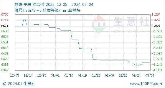 3月4日,生意社硅铁基准价为6407.14元/吨,与本月初持平。