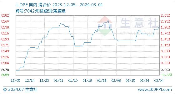 3月4日生意社LLDPE基准价为8231.43元/吨