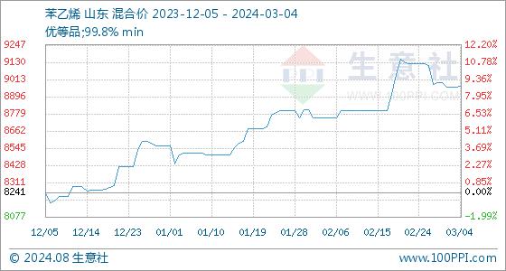 3月4日生意社苯乙烯基准价为8964.00元/吨