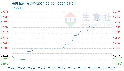 本周国内棉价区别于外棉的大涨大跌,由于节前纺企补库充足,节后棉纺织市场不温不火缺乏向上驱动,整体棉价走势平稳。据生意社商品行情分析系统,3月4日3128B级皮棉现货价格在17179元/吨,较上周上涨0.03%。