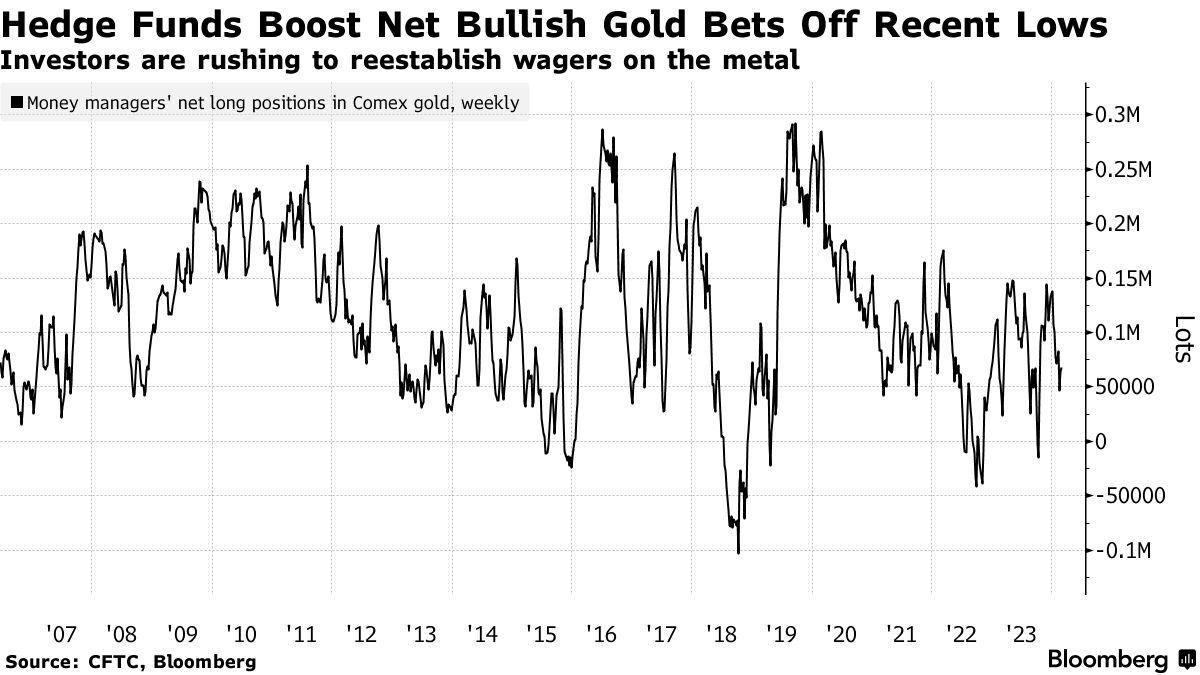 投资者的强劲买盘反映在黄金交易所交易基金(即黄金ETF)上,机构汇编的数据显示,SPDR黄金ETF(GLD.US)的持有量在上周五实现了九个交易日中首次出现的每日净流入。在新冠疫情期间,黄金ETF是金价上涨至当时历史新高的最主要推动力,但自2022年以来,更高的利率在很大程度上使得买盘势力逐渐熄火。