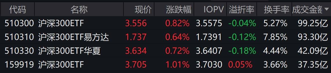 4只规模较大的沪深300ETF合计成交超270亿元,多只银行相关ETF大涨逾2%
