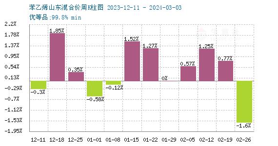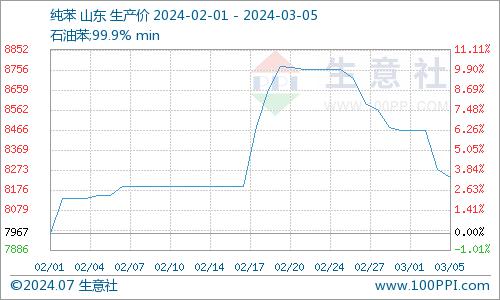 据生意社商品行情分析系统显示,近期山东苯乙烯主流价格上行。周初山东苯乙烯平均价格在8964.00元/吨,周末山东苯乙烯平均价格在9020.00元/吨,涨幅为0.62%。价格较去年同期上涨5.19%。