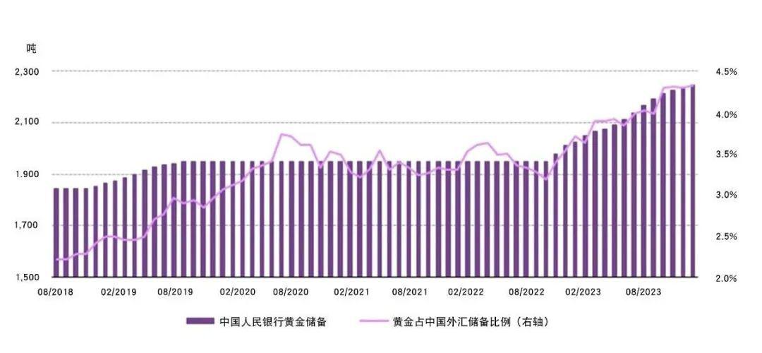 黄金作为重要的储备资产之一,除了受普通消费者追捧外,近一年来各国央行也展现出“购金热”。截至2024年2月末,我国央行黄金储备实现“十六连增”。2月末,黄金储备报7258万盎司,环比上升39万盎司。