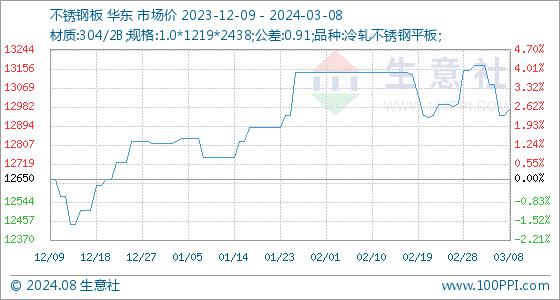 3月8日生意社不锈钢板基准价为12942.86元/吨