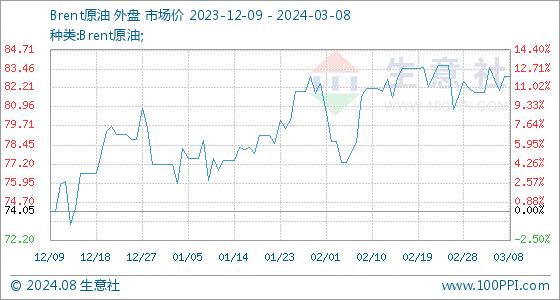3月8日生意社Brent原油基准价为82.96美元/桶