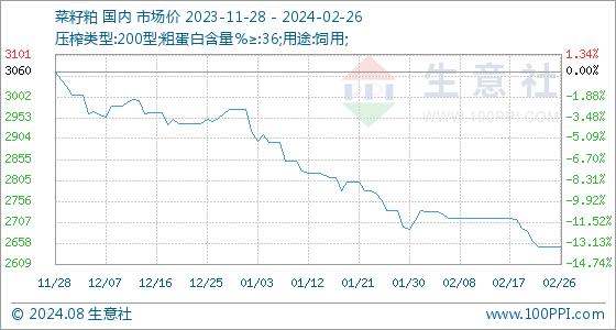 2月26日生意社菜籽粕基准价为2650.00元/吨