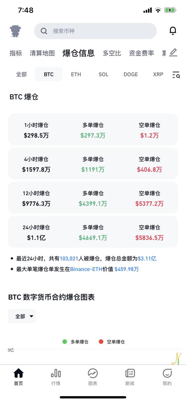 CoinGlass数据显示,比特币大跳水后24个小时内,比特币市场有超10万人被爆仓,爆仓总金额3.11亿美元。