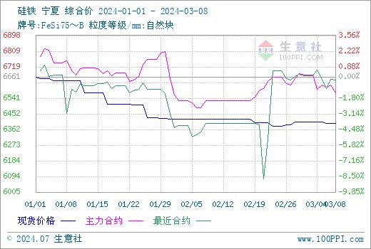 目前需求状况依旧不佳,市场供应充足,而原材料价格传出下调消息,加之期货行情偏弱,招标价格不理想等多个利空因素加持下,本周硅铁行情仍是偏弱运行,业内部分信心不足,悲观情绪浓厚,实际成交价格也是有所松动。据生意社商品行情分析系统,3月8日硅铁(牌号:FeSi75~B;粒度等级/mm:自然块)宁夏地区市场报价在6200-6450元/吨附近。