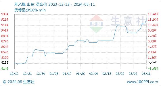 3月11日生意社苯乙烯基准价为9196.00元/吨