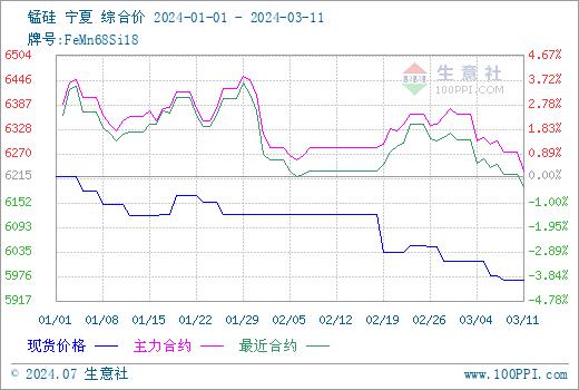本周硅锰市场震荡偏弱运行,河钢硅锰定价公布,价格环比下跌150元/吨,内蒙个别厂家表示目前已处于亏损状态,整个铁合金产业利润受到严重压缩,大部分厂家生产积极性仍然较低,短期信心有所不足。另成本端近期锰矿外盘报价上涨幅度较大,成本仍存上涨空间,部分厂家有调整锰矿配比计划,短期成本大幅下行空间或不大。期货端,本周硅锰盘面整体表现偏弱,短期暂无利好消息提振市场,上涨难度较大。据生意社商品行情分析系统,硅锰宁夏地区(规格为FeMN68Si18)3月8日市场报价5900-6000元/吨左右。
