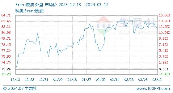 3月12日生意社Brent原油基准价为82.08美元/桶