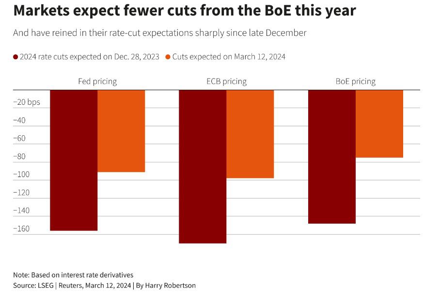 与2022年秋季不同,金融市场对预算案表现平静,这让投资者可以自由地重新关注经济,以及英国央行的货币政策可能与欧洲央行和美联储的政策有何不同。