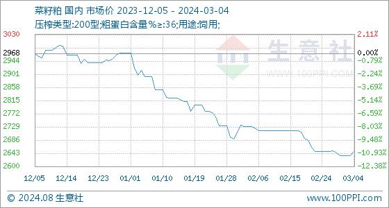 3月4日生意社菜籽粕基准价为2636.67元/吨