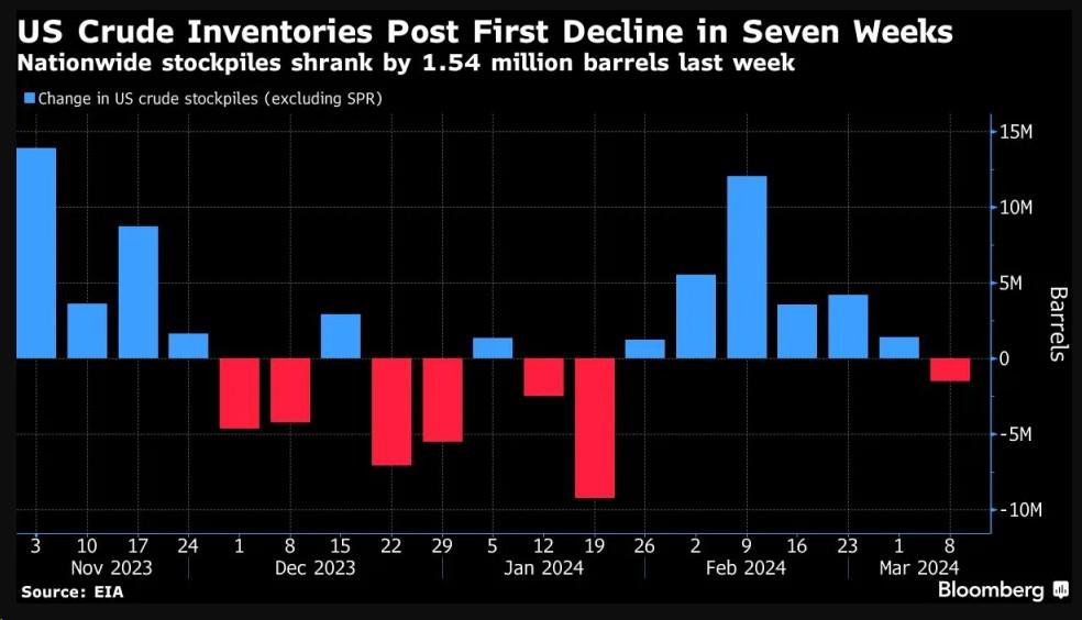 Sanford C.Bernstein&Co.高级分析师Neil Beveridge表示,“欧佩克的减产使得库存下降从2023年底持续到2024年第一季度,”支撑了油价。“随着2024年需求的增长,市场看起来相当平衡,这支持了我们的观点,即布伦特原油价格可能在每桶80美元左右。”