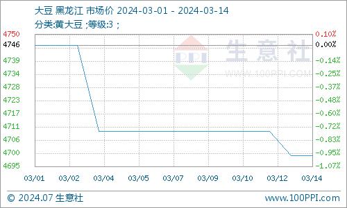 3月14日当周,黑龙江地区国产大豆收购主体依旧是九三集团,行情弱势平稳,较3月初整体下降接近1%.