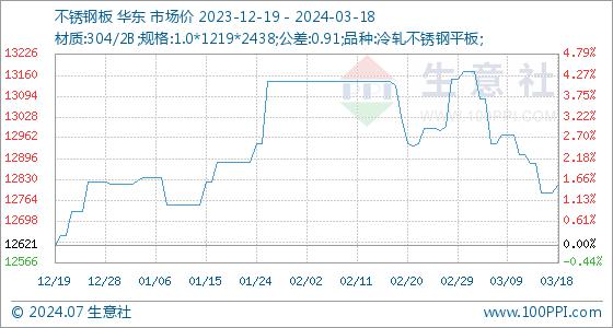 3月18日生意社不锈钢板基准价为12788.57元/吨
