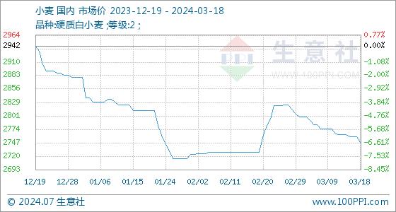 3月18日生意社小麦基准价为2760.00元/吨