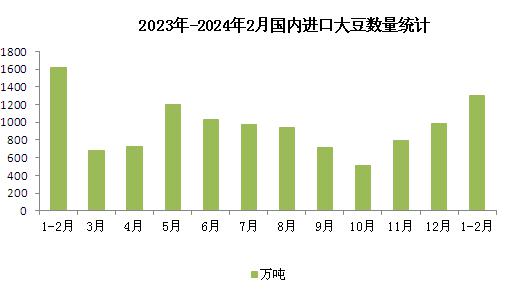 供应面:春节期间,大豆油厂开机率处于低位,原料进口大豆数量不断下降。据海关总署数据显示,2024年中国1-2月大豆进口量为1303.7万吨,去年同期为1429.5万吨,同比下降8.8%。原料进口量减少,豆粕供应趋紧,大豆油厂挺价为主,豆粕行情不断上行。