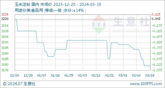 3月19日生意社玉米淀粉基准价为3180.00元/吨