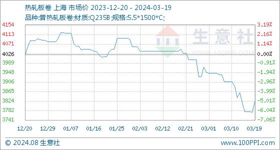 3月19日生意社热轧板卷基准价为3776.00元/吨