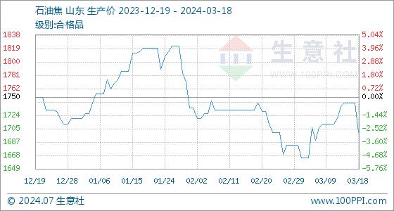 3月18日,生意社石油焦基准价为1742.50元/吨,与本月初(1682.50元/吨)相比,上涨了3.57%。