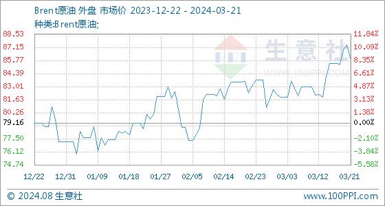 3月21日生意社Brent原油基准价为87.38美元/桶