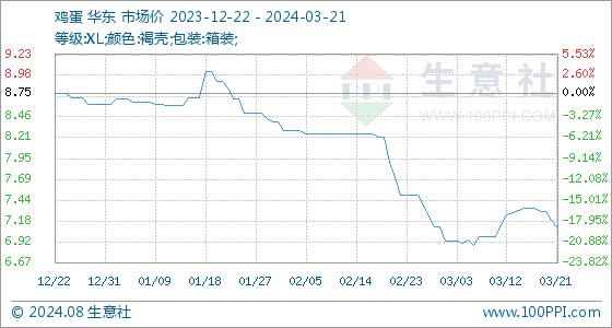 3月21日生意社鸡蛋基准价为7.18元/公斤