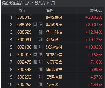 具体来看,上午率先异动的是铜缆高速连接。本周三,同花顺才刚发布这一板块。