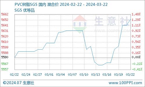 需求面:本周PVC现货市场价格继续上扬。期货的价格大幅上涨,带动现货市场信心,多数厂家上调价格,经销商跟进上调,市场低价难寻。目前PVC SG5报价多在5450-5790元/吨左右。