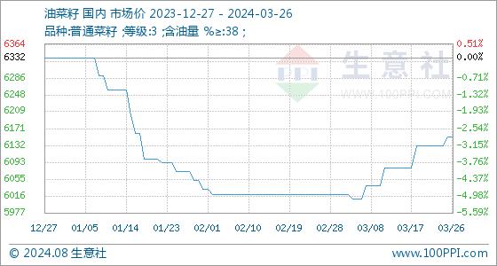 3月26日生意社油菜籽基准价为6152.00元/吨