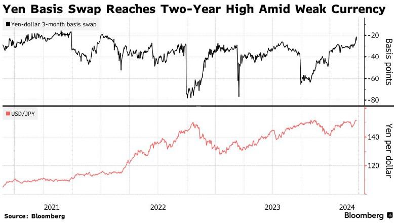 目前,十年期美债比日债高出约3.5个百分点的收益率溢价,这意味着如果这一利差不发生变化,只要美元兑日元汇率强于146.10,以日元为基础的美国证券投资就仍有利可图。截至发稿,美元兑日元汇率为151.37。