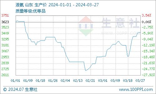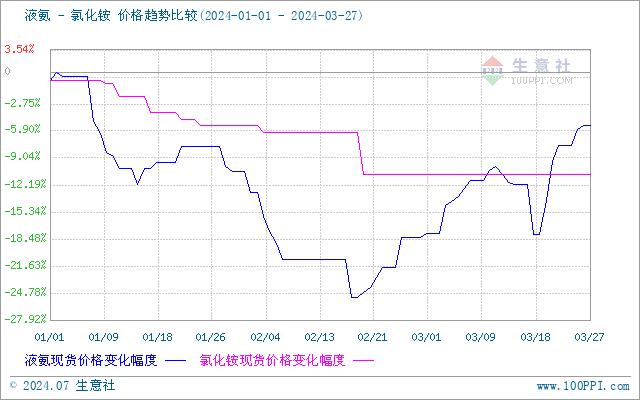 近日(3.18-3.27)液氨市场行情大幅上涨,氯化铵成本支撑走强。据生意社商品行情分析系统显示,截至3月27日液氨价格在3433元/吨,较18日的2973元/吨上涨了15.47%。供应面来看,国内厂商整体开工率明显下滑,尤其是北方主产区放氨量较之上周萎缩近6%左右。周中以来山东华鲁尿素装置恢复,部分转尿素生产,放氨量明显减少。另外,山东联盟、鲁洲装置仍在检修期,市场氨量表现吃紧,叠加河南、安徽、东北多地均有多套装置检修。生产企业普遍出现车辆排队等货现象。液氨出厂价自然屡次上调。山东地区厂家周内普遍上调2-3次,累计调幅在300-400元/吨。市场表现供不应求。